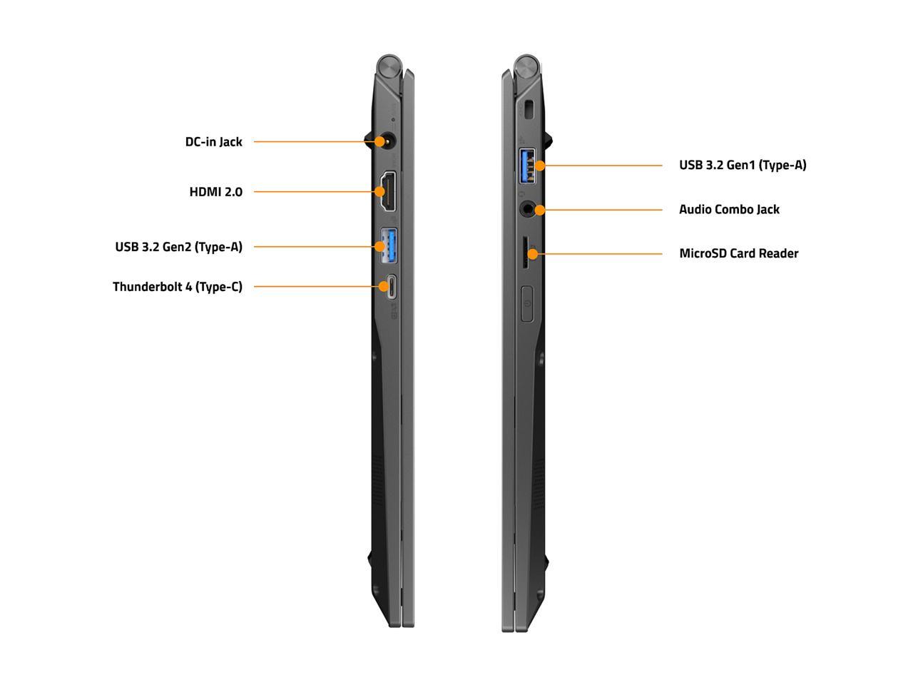 - 1 x HDMI 2.0, 1 x Audio Combo Jack, 1 x MicroSD Card Reader, 1 x DC-in Jack