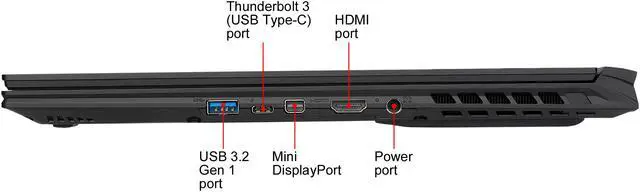 1 x Thunderbolt 3 (Type-C), 1 x Mini DisplayPort 1.4, 1 x HDMI 2.1