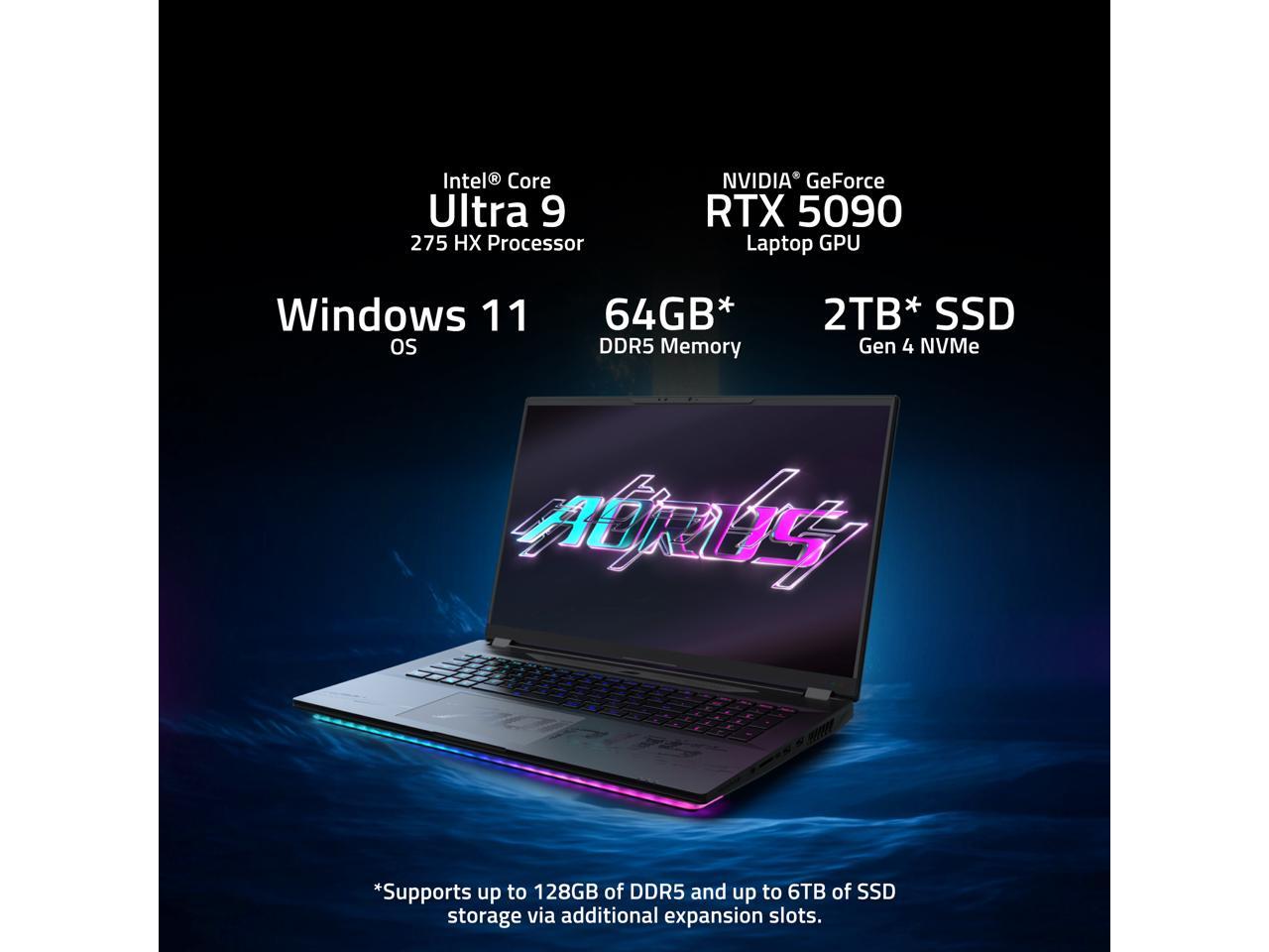 GIGABYTE AORUS MASTER 18 Gaming Laptop - 240Hz 2560x1600 Mini-LED - NVIDIA GeForce RTX 5090 - Intel Core Ultra 9 275HX - 2TB SSD with 64GB DDR5 RAM - Windows 11 Home AD