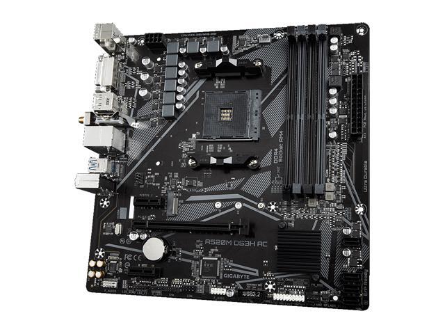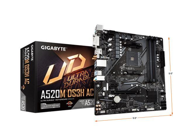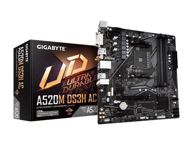 GIGABYTE A520M DS3H AC AM4 AMD 520 ATX Motherboard with Single M.2, SATA 6Gb/s, USB 3.2 Gen 1, WIFI 802.11a, Realtek GbE LAN