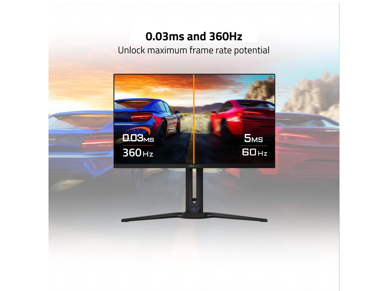 - Refresh Rate & Response: 360Hz refresh rate, 0.03ms GTG response time