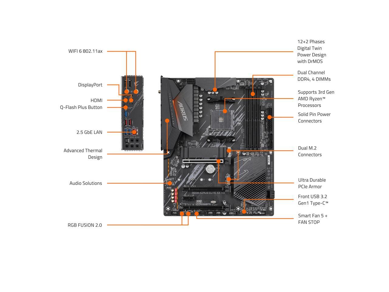GIGABYTE B550 AORUS ELITE AX V3 AM4 AMD B550 ATX Motherboard with Dual M.2, SATA 6Gb/s, USB 3.2 Gen 2, Wi-Fi 6, 1GbE LAN, PCIe 4.0