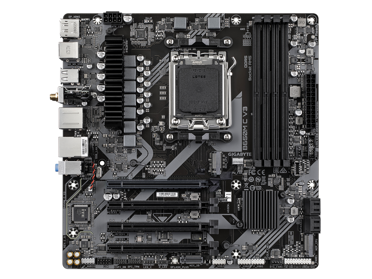 GIGABYTE B650M C V3 (rev. 1.0) AM5 LGA 1718 AMD B650 M-ATX Motherboard, DDR5, PCIe 4.0 M.2, PCIe 4.0, USB 3.2 Gen1 Type-C, 1GbE LAN, Q-Flash Plus, EZ-Latch