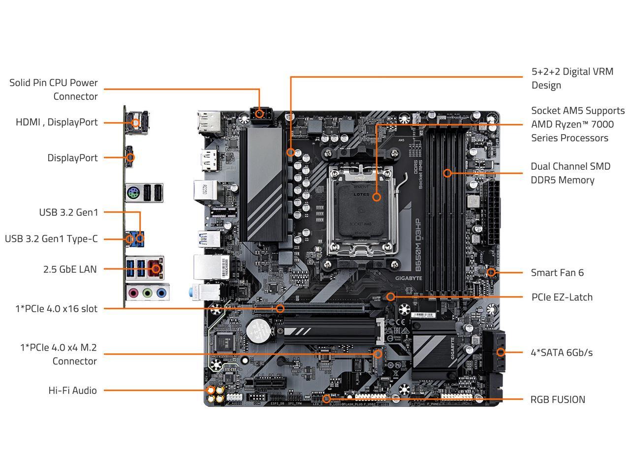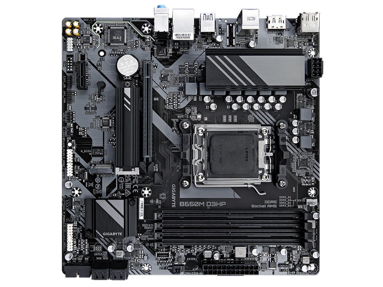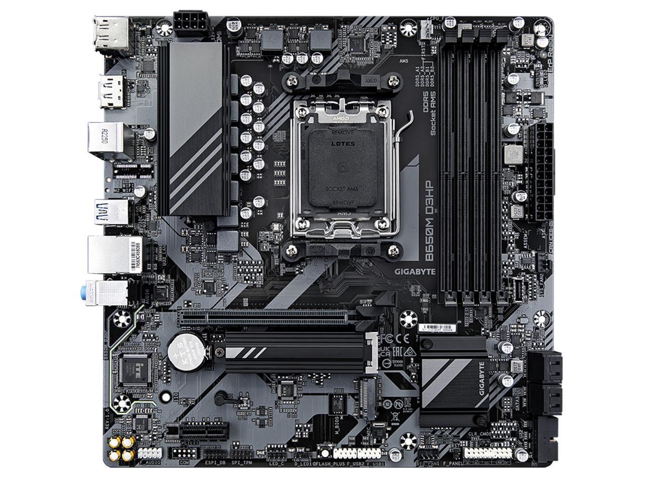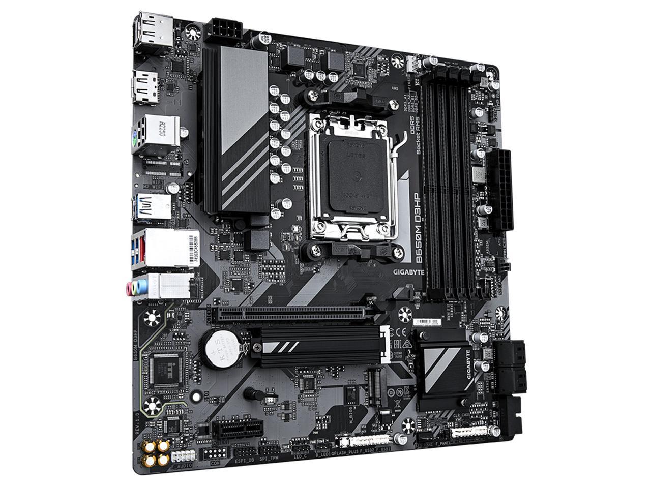 GIGABYTE B650M D3HP AM5 LGA 1718 AMD B650 M-ATX Motherboard with 5-Year Warranty, DDR5, 2x PCIe 4.0 M.2, PCIe 4.0, USB 3.2 Gen2 Type-C, 2.5GbE LAN