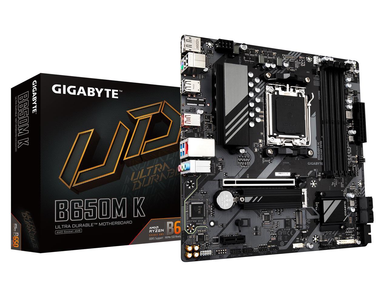 GIGABYTE B650M K AM5 LGA 1718 AMD B650 M-ATX Motherboard, DDR5, 2x PCIe 4.0 M.2, PCIe 4.0, USB 3.2 Gen2 Type-C, 2.5GbE LAN