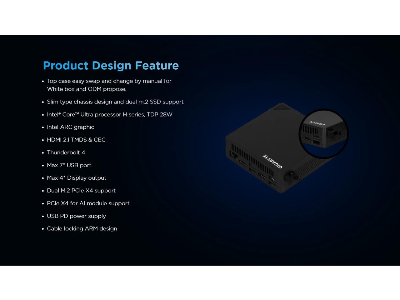 GIGABYTE BRIX SFF Mini PC/Barebone GB-BRU5-225H, Intel® Core™ Ultra 5 processor 225H, Intel® Arc™ Graphics, 130T GPU.