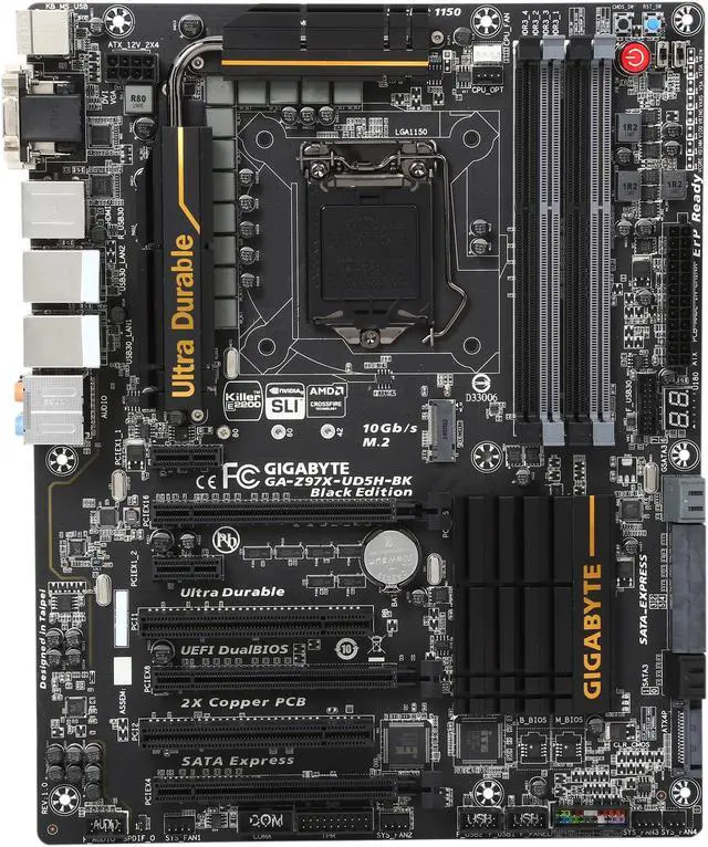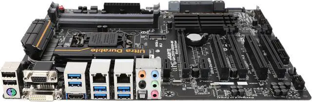 | Features | Extended server level 168 hour durability Test Supports 4th and 5th Generation Intel Core processors Extreme multi graphics support Precise digital CPU power design SATA Express support for 10 Gb/s data transfer M.2 for SSDs drives with up to 10 Gb/s data transfer Killer E2200 and Intel gaming networking Realtek ALC1150 115dB SNR HD Audio with built-in rear audio amplifier 2x copper PCB design Long lifespan Durable Black Solid caps APP Center including EasyTune and Cloud Station utilities GIGABYTE UEFI DualBIOS |