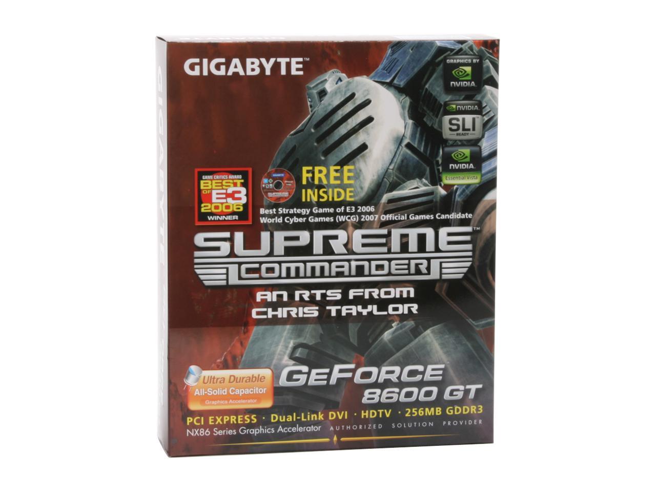 Featuring the latest GeForce 8600 GT with 256MB GDDR3 memory and DirectX 10 and Shader Model 4.0 support, the GIGABYTE GV-NX86T256D delivers amazingly realistic gaming effects and full support for Microsoft Windows Vista Premium. Differing from past GPU generations, this talented card features a dedicated on-chip video processor for superb picture quality and ultra smooth video playback.