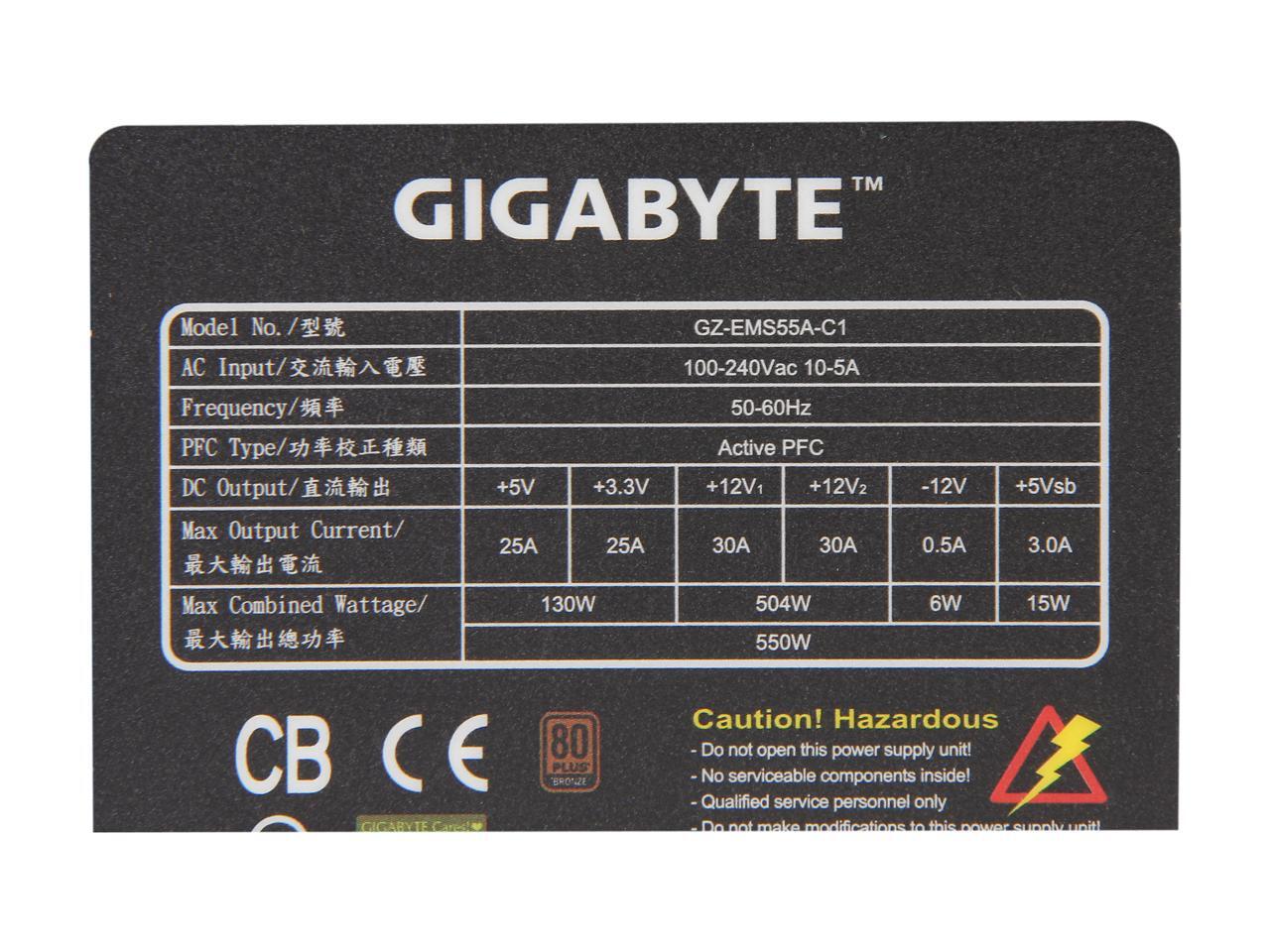 GIGABYTE GreenMax Plus GZ-EMS55A-C1 550 W ATX12V / EPS12V SLI Certified CrossFire Ready 80 PLUS BRONZE Certified Active PFC Power Supply