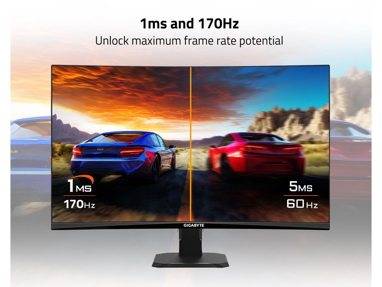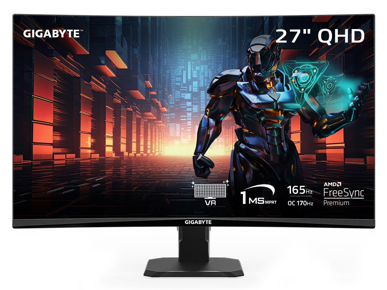 GIGABYTE - GS27QC - 27" VA Curved Gaming Monitor - QHD 2560x1440 - 165Hz/OC 170Hz - 1ms MPRT - AMD FreeSync Premium - HDMI, DP - Black