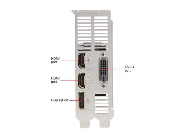 - 1 x Dual-link DVI-D 2 x HDMI 2.0b 1 x DisplayPort 1.4
