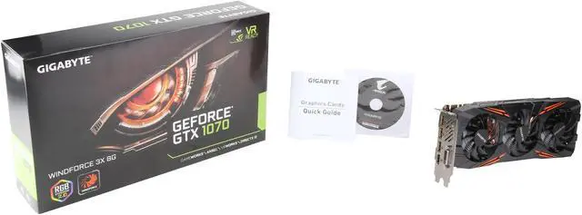The GIGABYTE GTX 1070 video card is the best choice for gamers demanding great performance at a great value. Based on the state-of-the-art Pascal architecture, it takes on today's most challenging, graphics-intensive games and VR without missing a beat. WINDFORCE 3X cooling system along with premium quality components guarantees unbeatable reliability and stability even when you're pushing the card to its limit. Make a statement with customizable LEDs using RGB Fusion 2.0 software and tweak till your heart's content with AORUS Engine utility.