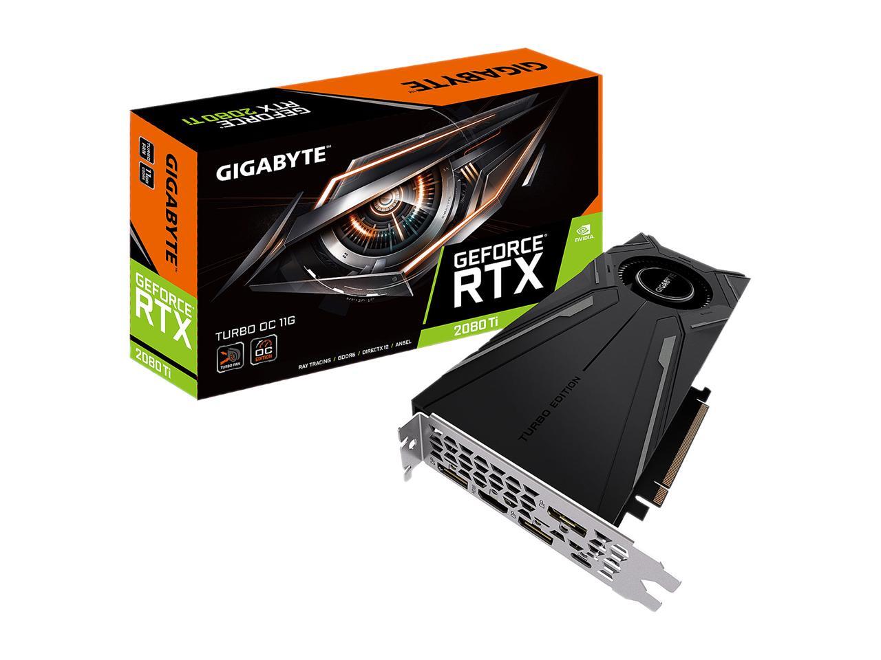 GIGABYTE GeForce RTX 2080 Ti DirectX 12 GV-N208TTURBO OC-11GC 11GB 352-Bit GDDR6 PCI Express 3.0 x16 ATX Video Card
