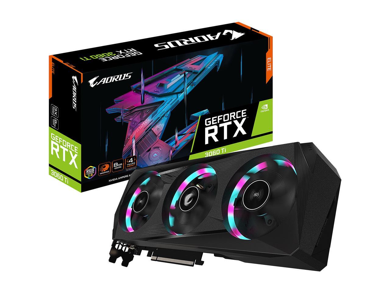 GIGABYTE AORUS GeForce RTX 3060 Ti ELITE 8G Graphics Card, 3 x WINDFORCE Fans, 8GB 256-bit GDDR6, GV-N306TAORUS E-8GD Video Card