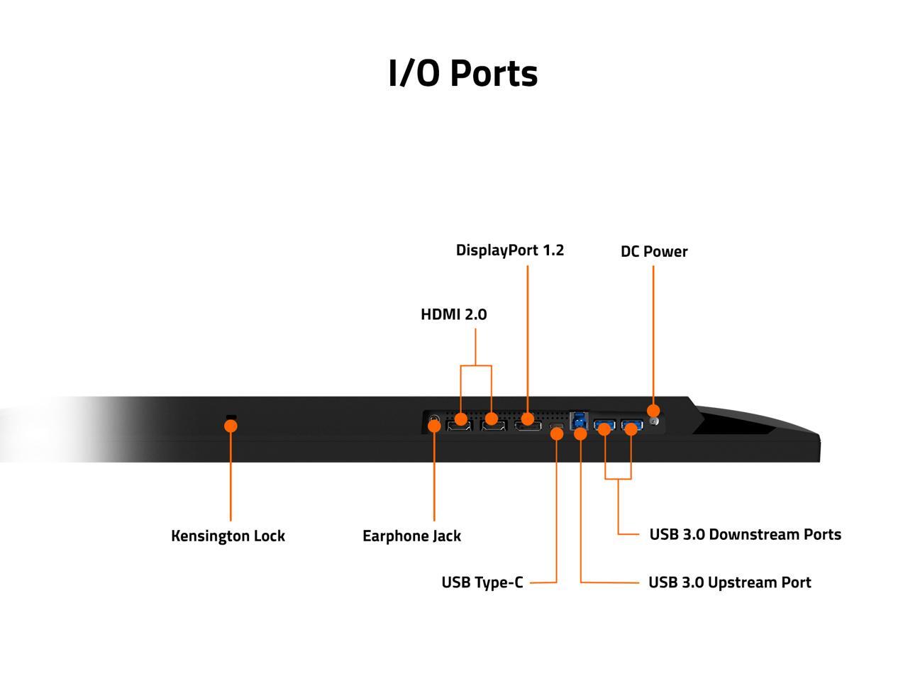 - Connectivity: 2x HDMI 2.0, 1x Displayport 1.2, 1x USB Typc-C, 2x USB 3.0 downstream port, 1x USB 3.0 upstream port, 1x Earphone Jack