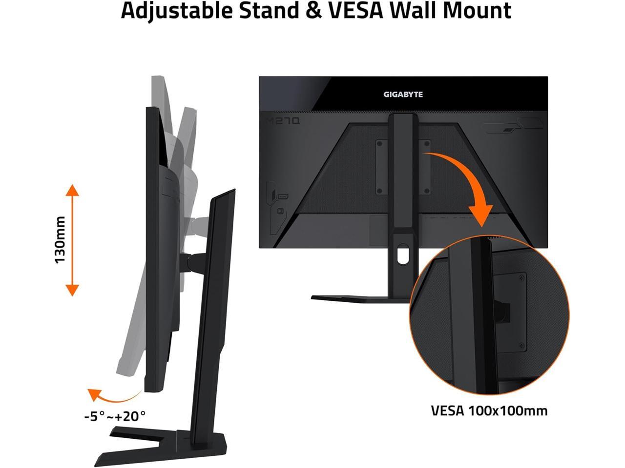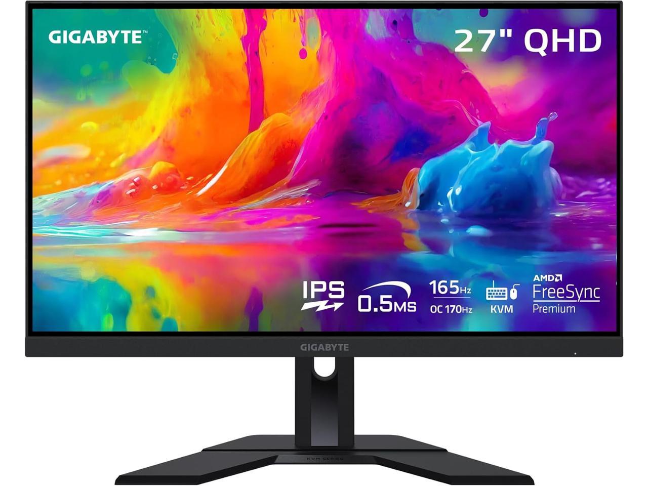 GIGABYTE - M27Q (2023) - 27" IPS Gaming Monitor - QHD 2560x1440 - 165Hz/OC 170Hz - 1ms MPRT - AMD FreeSync Premium - Type C KVM - HDMI, DP, Type C - Height Adjustable - Black