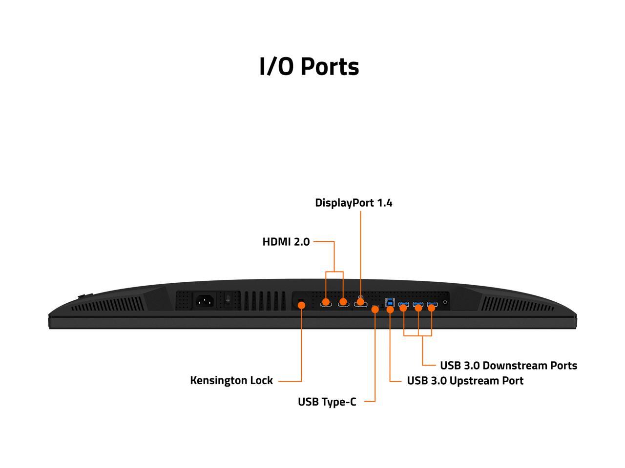 Connectivity: 2 x HDMI 2.0, 1 x Displayport 1.4, 1 x USB Type-C , 2 x USB 3.0 Downstream ports, 1 x USB 3.0 Upstream port, 1 x Earphone Jack