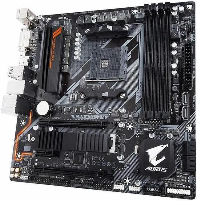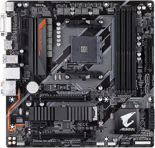 Supports AMD 2nd Generation Ryzen/ Ryzen with Radeon Vega Graphics/ 1st Generation Ryzen Processors Dual Channel Non-ECC Unbuffered DDR4, 4 DIMMs HDMI, DVI-D Ports for Multiple Display Ultra-Fast NVMe PCIe Gen3 x4 M.2 with Thermal Guard High Quality Audio Capacitors and Audio Noise Guard with LED Trace Path Lighting RGB FUSION with Multi-Zone LED Light Show Design, Supports Digital LED & RGB LED Strips GIGABYTE Exclusive 8118 Gaming LAN with Bandwidth Management Smart Fan 5 Features 5 Temperature Sensors and 3 Hybrid Fan Headers with FAN STOP APP Center Including EasyTune and Cloud Station Utilities Anti-Sulfur Resistors Design Ultra Durable 25KV ESD and 15KV Surge LAN Protection CEC 2019 Ready, Save Power with a Single Click. Micro ATX Form Factor; 24.4cm x 24.4cm.