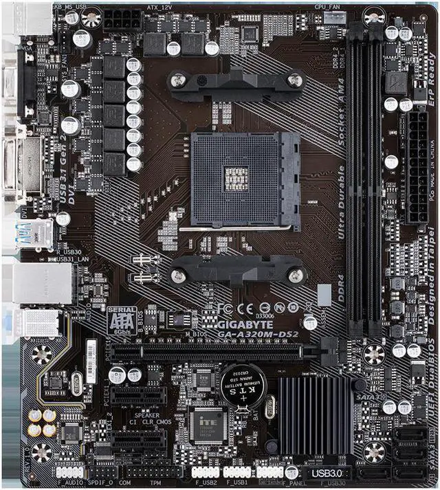AM4 Socket: Supports AMD 3rd Gen Ryzen™/ 2nd Gen Ryzen™/ 1st Gen Ryzen™/ 2nd Gen Ryzen™ with Radeon™ Vega Graphics/ 1st Gen Ryzen™ with Radeon™ Vega Graphics/ Athlon™ with Radeon™ Vega Graphics/ 7th Gen A-series/ Athlon X4 Processors (Please refer "CPU Support List" for more information. ) Chipset AMD A320 Memory 2 x DDR4 DIMM sockets supporting up to 32 GB of system memory Dual channel memory architecture Support for DDR4 3200(O. C. )/2933(O. C. )/2667*/2400/2133 MHz memory modules * Support for higher than DDR4 2667 MHz may vary by CPU. Support for ECC Un-buffered DIMM 1Rx8/2Rx8 memory modules (operate in non-ECC mode) Support for non-ECC Un-buffered DIMM 1Rx8/2Rx8/1Rx16 memory modules Support for Extreme Memory Profile (XMP) memory modules (Please refer "Memory Support List" for more information. ) Onboard