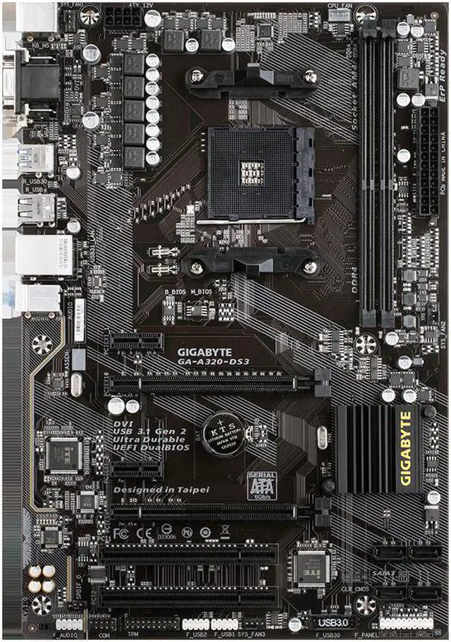 AM4 Socket: Supports AMD 3rd Gen Ryzen/ 2nd Gen Ryzen/ 1st Gen Ryzen/ 2nd Gen Ryzen with Radeon Vega Graphics/ 1st Gen Ryzen with Radeon Vega Graphics/ Athlon with Radeon Vega Graphics/ 7th Gen A-series/ Athlon X4 Processors (Please refer "CPU Support List" for more information. ) Chipset AMD A320 Memory 2 x DDR4 DIMM sockets supporting up to 32 GB of system memory Dual channel memory architecture Support for DDR4 3200(O. C. )/2933(O. C. )/2667*/2400/2133 MHz memory modules * Support for higher than DDR4 2667 MHz may vary by CPU. Support for ECC Un-buffered DIMM 1Rx8/2Rx8 memory modules (operate in non-ECC mode) Support for Extreme Memory Profile (XMP) memory modules (Please refer "Memory Support List" for more information. ) Onboard