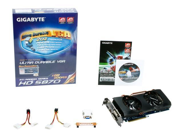 GIGABYTE Radeon HD 5870 (Cypress XT) DirectX 11 GV-R587UD-1GD 1GB 256-Bit GDDR5 PCI Express 2.1 x16 HDCP Ready CrossFireX Support Video Card w/ Eyefinity