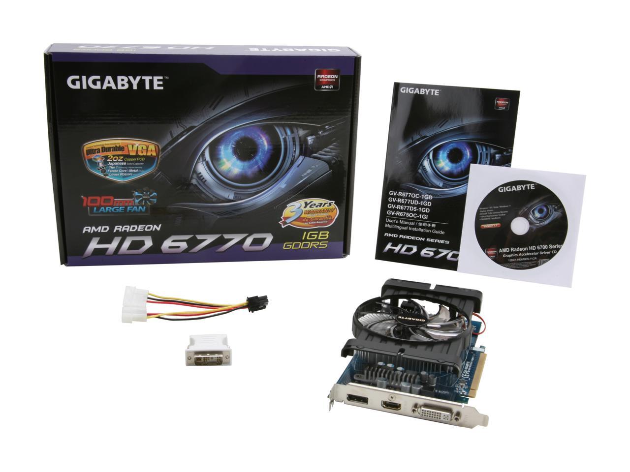 A great combination of performance and value, the GIGABYTE GV-R677D5-1GD graphics card offers a great solution for serious gamers and HD enthusiasts requiring smooth gameplay and high quality HD video playback without a hit to the wallet. It's built around 800 Stream Processors with 1GB/128-bit GDDR5 memory. A host of AMD technology such as AMD Eyefinity, AMD EyeSpeed, AMD HD3D, Crossfire and UVD (Unified Video Decoder) offers more than one way to boost your experience.
