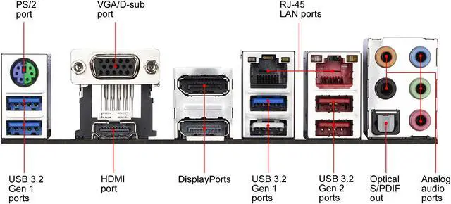 1 x D-Sub port, supporting a maximum resolution of 1920x1200@60 Hz 1 x HDMI ports, supporting a maximum resolution of 4096x2160@30 Hz * Support for HDMI 1.4 version and HDCP 2.3. 2 x DisplayPorts, supporting a maximum resolution of 4096x2304@60 Hz * Support for DisplayPort 1.4 version, HDCP 2.3, and HDR.