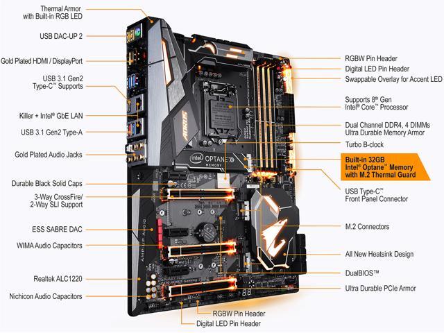 GIGABYTE Z370 AORUS GAMING 7-OP LGA 1151 (300 Series) Intel Z370 ATX Motherboard with 32GB Intel Optane Memory