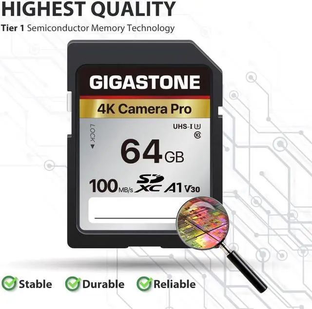 Capture all the best moments with Gigastone SD card. The high-performance memory card is designed with fast read speeds ideal for your DSLR camera or full HD camcorder. This Ultra High Speed memory card is UHS-1 enabled, which captures photos and video faster than your typical SD card