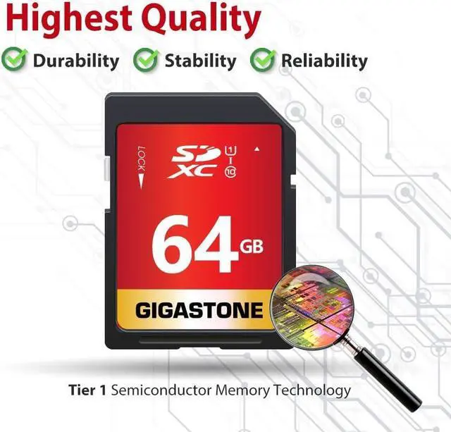 Capture all the best moments with Gigastone SD card. The high-performance memory card is designed with fast read speeds ideal for your DSLR camera or full HD camcorder. This Ultra High Speed memory card is UHS-1 enabled, which captures photos and video faster than your typical SD card