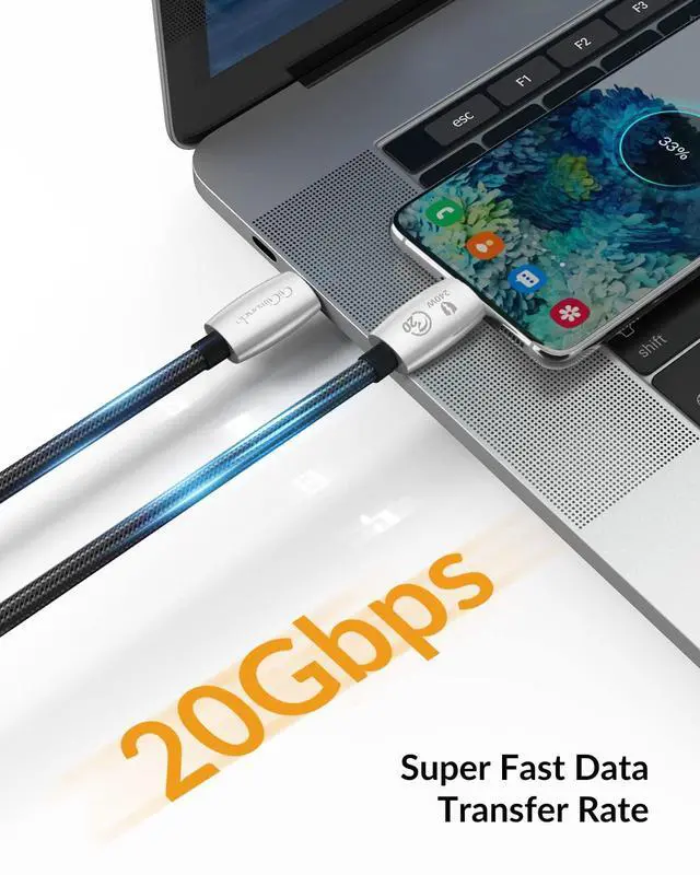 Fast Data Transfer20Gbps USB 3.2 Gen2x2 high speed usb c cable data transfer speed achieves 1847MB/s, compatible with thunderbolt 3/4. An HD movie, 4G files or over 2500 music albums can be transferred in 1 seconds
