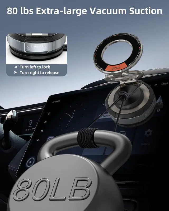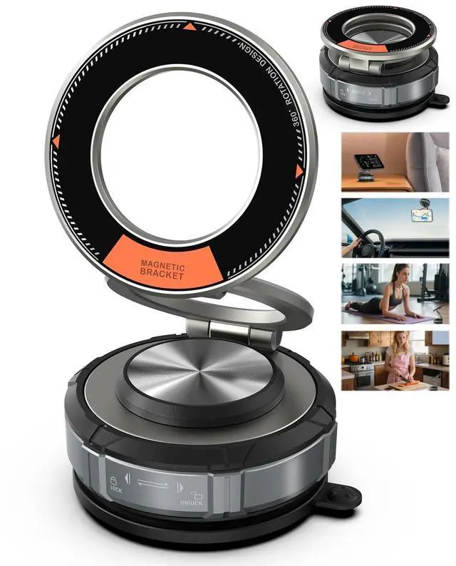 360° Adjustable Vacuum Suction Bracket For MagSafe Car Mount,Zinc Alloy Vacuum Magnetic Phone Holder,Cell Phone Holders For Car/Home/Travel,Suction Car Mount For iPhone 17/16/15/14/13/Android