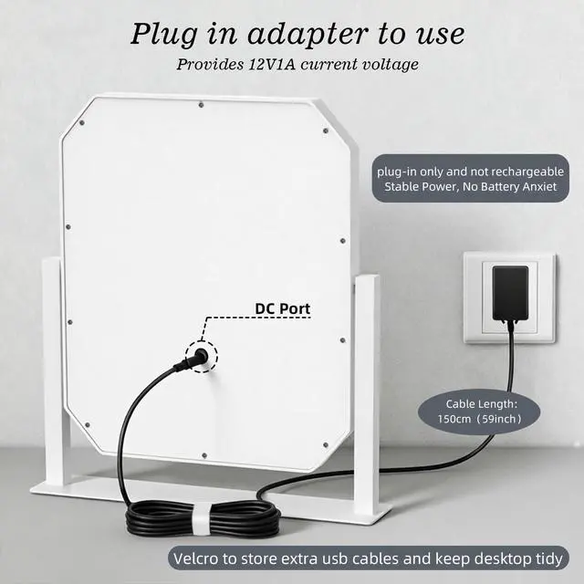 Stepless Brightness: The brightness of makeup mirror can be adjusted from 10% to 100%.