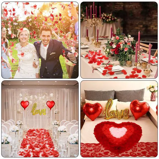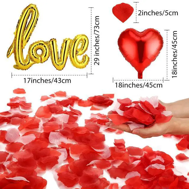 1200 Pieces realistic and gorgeous silk rose petals, including 600 dark red, 400 bright red and 200 pink, combine with 2 red heart shaped foil balloons and 1 gold love foil balloon, adequate quantity for you to create your own romantic atmosphere. They are wonderful and gorgeous decorations way to express your love.