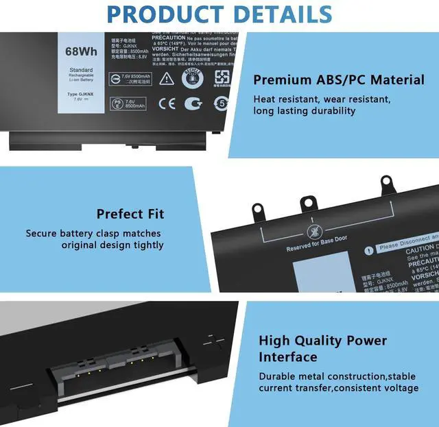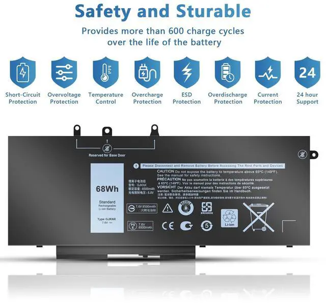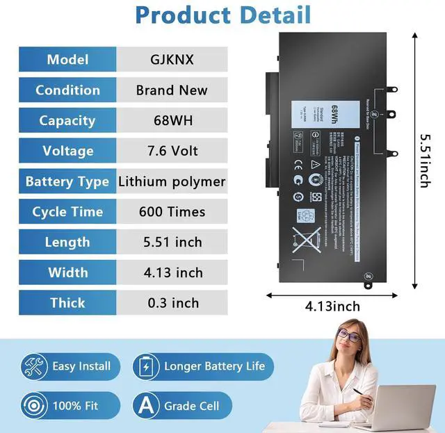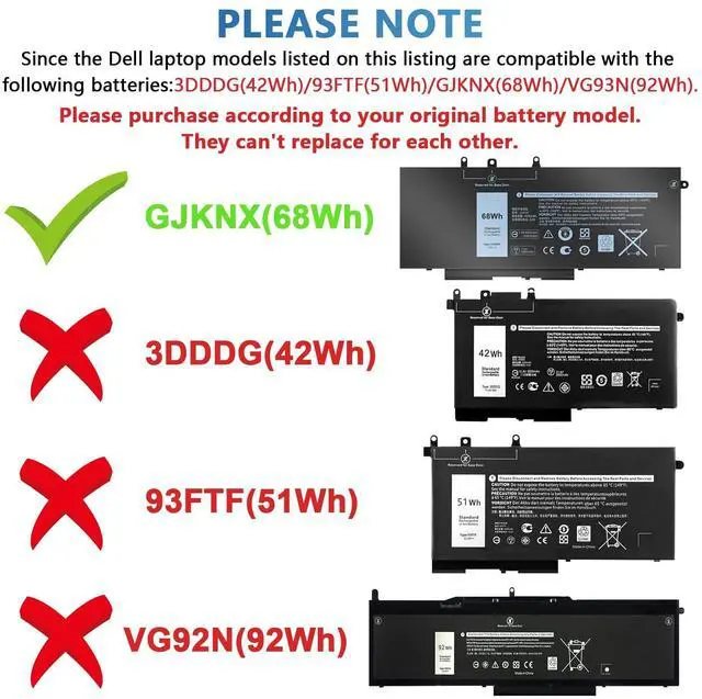 68WH GJKNX 7.6V Battery Compatible with Dell Latitude 5480 5580 5490 E5480 E5580 E5490 5280 5288 5488 5590 5591 5491 5495 E5590 Precision 15 3520 3530 Series GD1JP DY9NT 5YHR4 451-BBZG 4-Cell