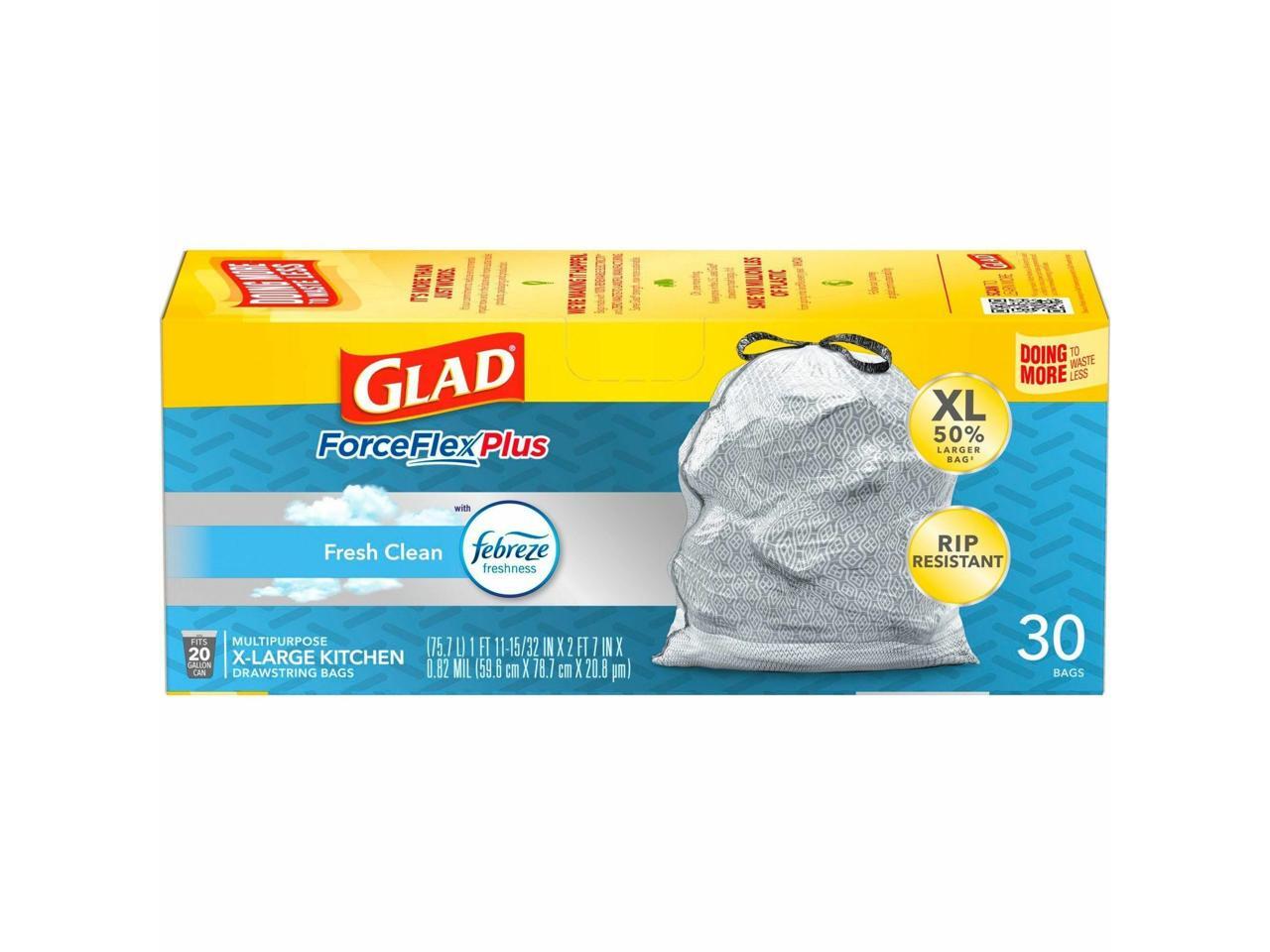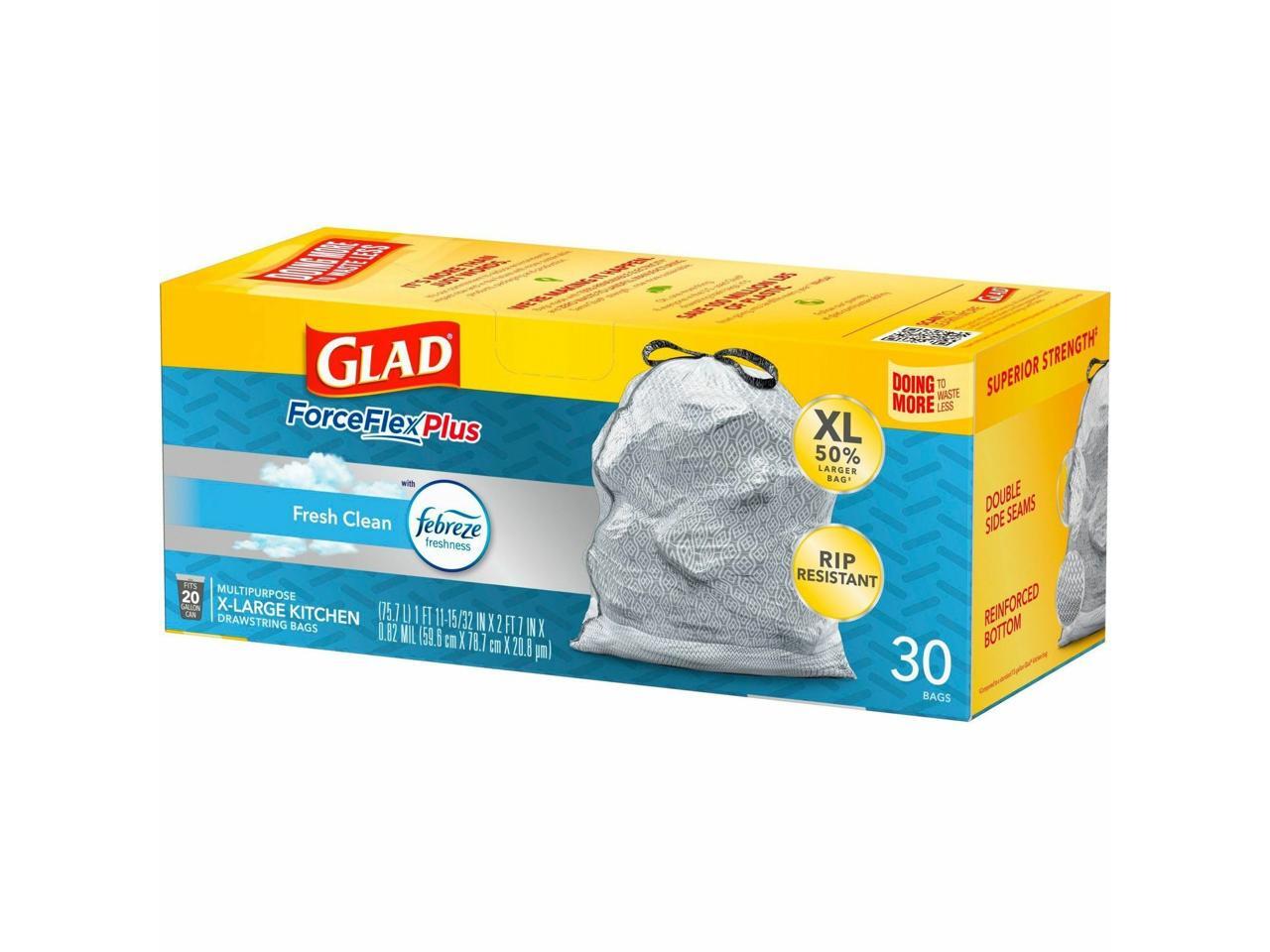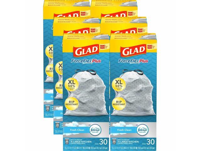 Glad ForceFlexPlus X-Large Kitchen Drawstring Bags - Fresh Clean with Febreze Freshness - 6Box/Carton - 30 Per Box 78913CT