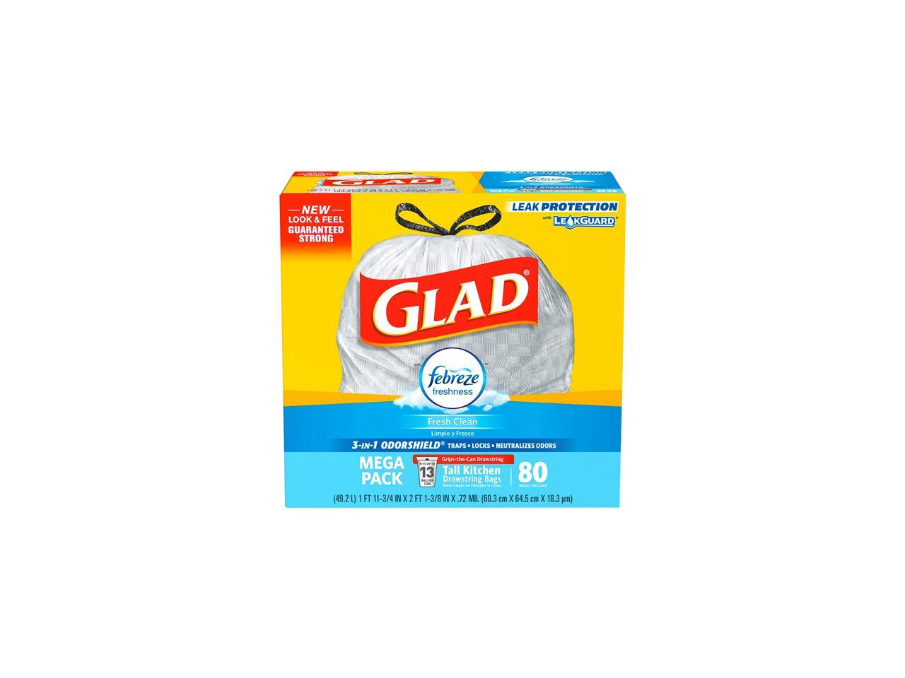 Handle all kitchen and office demands with Glad's ideally sized, 13-gallon, tall kitchen garbage bags