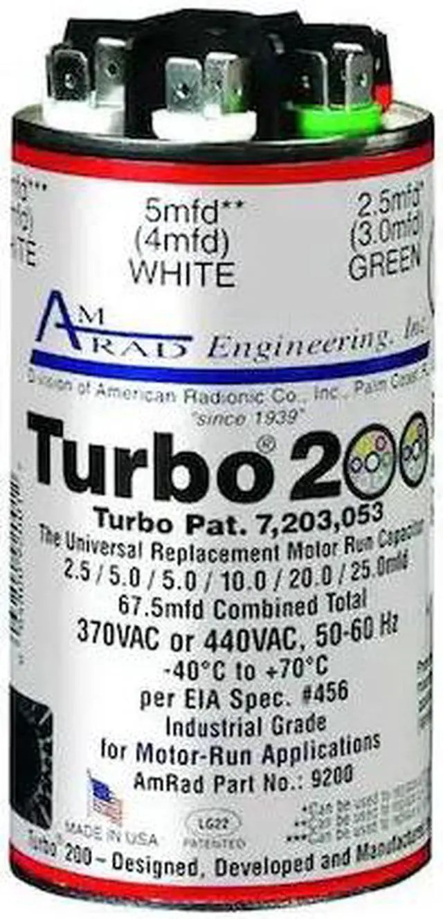 GLOBAL Turbo 200 Motor Run Capacitor, 2.5-67.5MFD, 370/440V