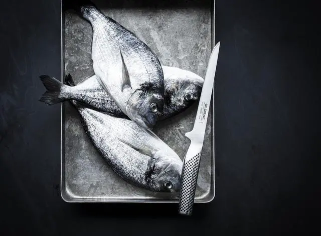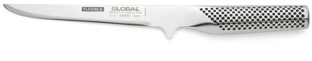 The Global 6.25 -Inch Flexible Boning Knife offers precision and control for trimming and filleting. Made in Japan from razor-sharp Cromova 18 stainless steel, its lightweight, flexible, and corrosion-resistant. The ergonomic dimpled handle ensures balance and comfort, while the seamless design provides lasting performance and easy cleaning.