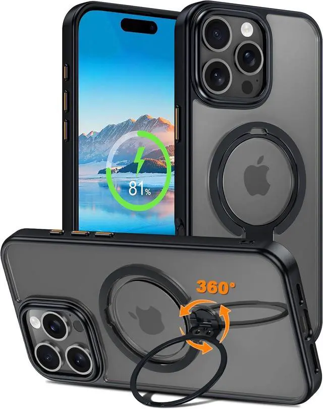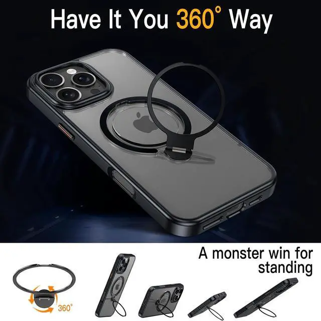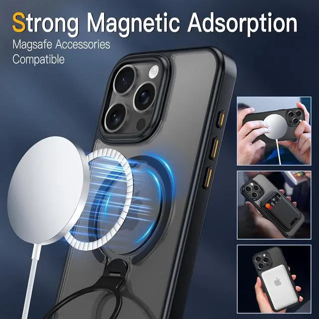 [Exclusive Dual Inner & Outer Magnets] The case is embedded with 2 magnets, outer magnetic stand and inner magnetic ring, which ensures the consistent wireless charging and magnetic connection no matter you open or close the stand. When it opens, you can snap the charger to charge it at the same time. When it closes, it can strongly attach to those magsafe accessories such as magnetic leather wallet and sleeve, stand wireless charger, credit cards, etc.