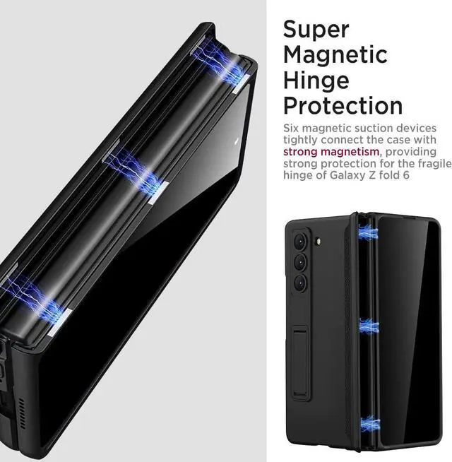 Super Magnetic Hinge Protection --- The Samsung Galaxy z fold 6 case with hinge protection has Eight Magnetic adsorption devices that hold the top and bottom covers of the Fold 6 tightly together through strong magnetic field adsorption technology, protecting the hinge of Fold 6 at all times.
