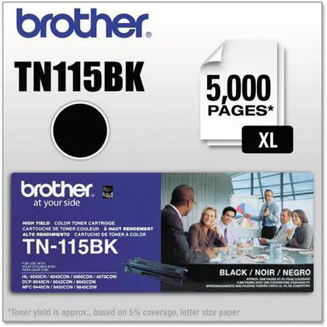 High-yield toner cartridge is designed for use with Brother MFC9440CN, MFC9840CDW; digital copiers DCP9040CN, DCP9045CDN; laser printers HL4040CDN, HL4040CN and HL4070CDW. All genuine Brother printer supplies are designed as part of an entire printing system. Black cartridge yields approximately 5,000 pages at 5 percent coverage on letter-size paper.