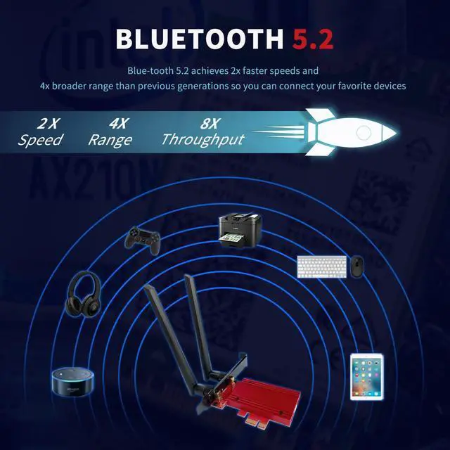 equiped with AX210 chipset, ideal for gaming and 4K streaming,videos, and more experience it is more stable and faster than ever before.