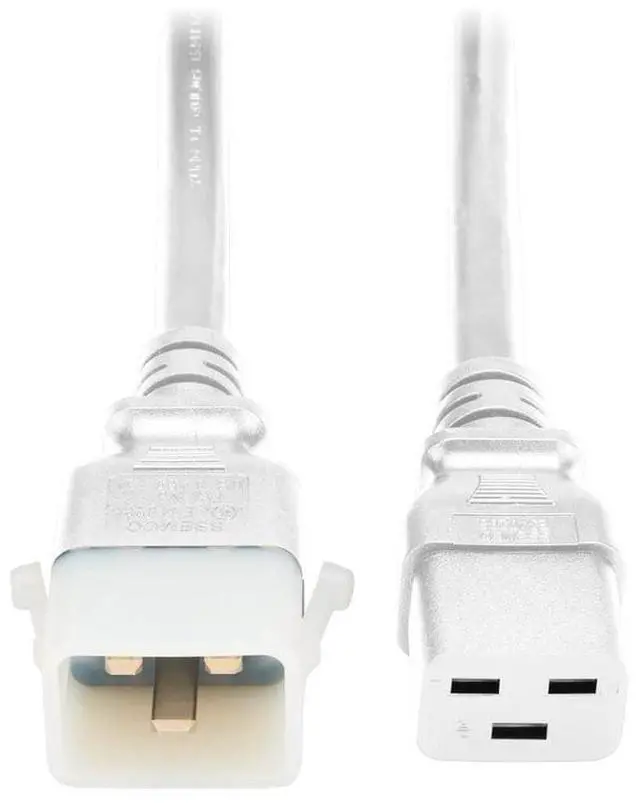 C20-to-C19 Power Cables for Network Devices That Require a Heavy-Gauge ConnectionThese power extension cords feature 12 AWG wire suitable for high power connections, making them a reliable solution for large server applications that require a higher-rated, heavier-gauge cable. The P036-E04-AWH-6 can be used to connect servers, routers, network switches or blade server enclosures to a UPS system or PDU. The four-foot ( 1.2 -meter) length helps reduce cable clutter by providing a tailor-made fit between the device and the PDU in a crowded rack enclosure. Six PDU power cables are included, an ideal pack for large-scale equipment rollouts.