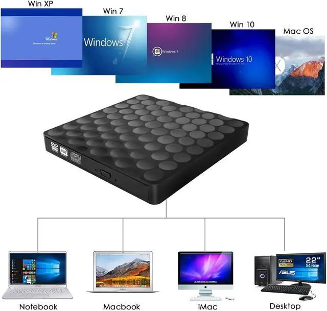 • [USB 3.0 and USB Type C External CD DVD Drive] This dual DVD drive has dual interfaces, USB 3.0 & USB Type C, and is compatible with Windows 7/8/10/2003 / XP, Vista, Linux and Mac OS systems. it is also a perfect companion for computers without the internal drive.