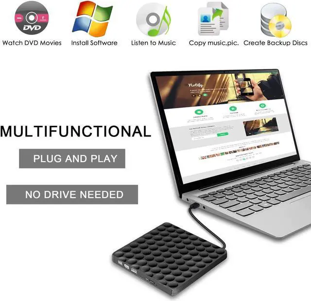 • [High performance and wide compatibility] The external drive supports DVD/CD burner, reader, player, watching movies, installation system, data backup, and supports DVD +/- R, DVD, CD-ROM, DVD-ROM, CD +/- R, CD +/- -RW, DL format. Ideal for PC laptop desktops without built-in drives.