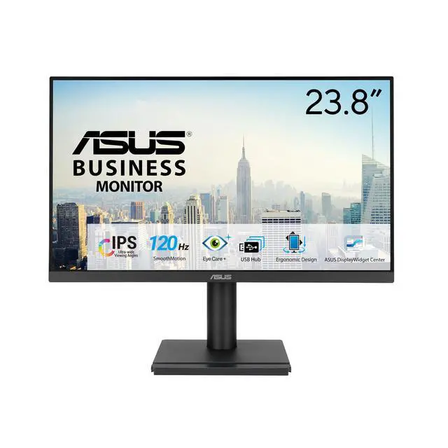 Enhance Your ProductivityASUS VA249QGS is a 23.8 -inch Full HD monitor that features a frameless IPS panel for wide angle viewing to deliver incredibly sharp imagery and stunning video playback. With fast 120Hz refresh rate and Adaptive-Sync technology to eliminate screen tearing and choppy frame rates for the smoother-than-ever experience. Its highly ergonomic design with tilt, swivel, pivot and height adjustments along with TUV Rheinland-certified Flicker-free and Low Blue Light provides a comfortable viewing experience. Lifelike views with 178 Degree wide view angleFrameless IPS panel provides 178 Degree viewing angles, both horizontally and vertically, so you can enjoy its beautiful visuals from almost any direction.
