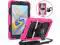 Three Parts: Top PC Frame with built-in screen protector Inner PC bumper lining Soft silicone outer shell Provide all round protection for your tablet. 360 Degree Rotating Kickstand Rotating & Steady stand frees your hands. Rotatable & Adjustable Hand Strap The hand strap can be adjusted with the tightness you like, whether you're an adult or a child. Adjustable & Removable Shoulder Strap With the adjustable and removable shoulder strap, it's convenient when you on a business trip, hiking or any other occasion when you need it. It can be also hung on the car headrest for back-seat passengers' entertainment. Ideal for kids, students. Drop Resistance This t387 case will protect your tablet from dropping, shocking and scratching. Do not need to worry about accidental drop.