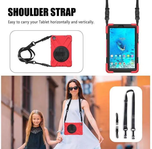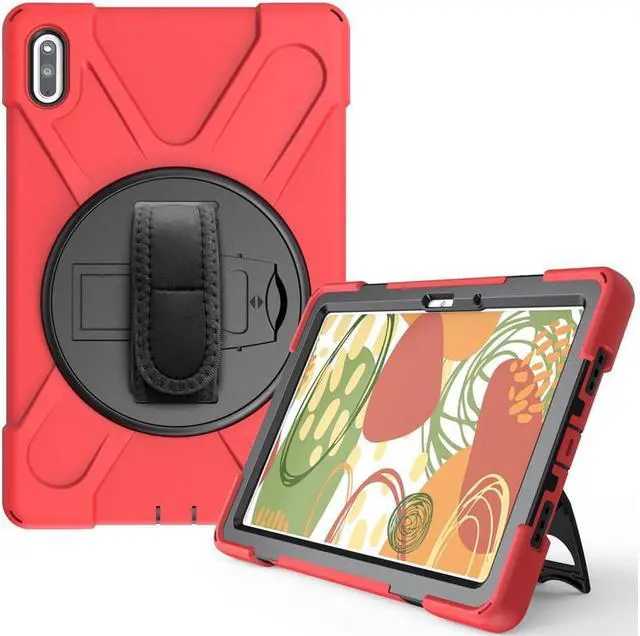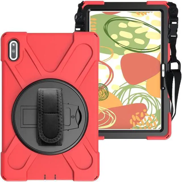 Huawei MatePad 10.4 inch 2020 2022 Case with Rotating Kickstand / Hand Strap / Shoulder Belt Hybrid Armor Rugged Heavy Duty Shockproof Cover Red