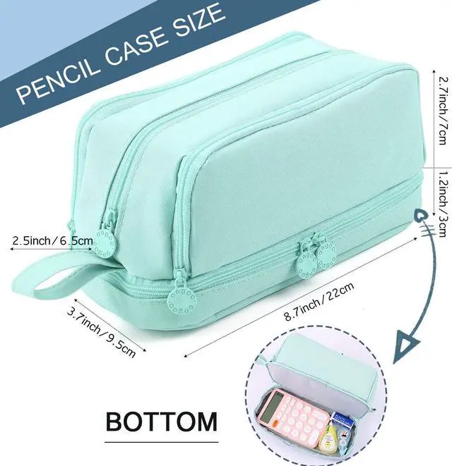 Large Capacity Pencil Case: Upgraded size 8.7*3.7*4inches (L*W*H) with large capacity storage, It can store up to 100+ colored pens or pencils. Perfect for students who need to carry a variety of stationery accessories such as pens, pencil sharpener, calculator, rubber, sticker, ruler, etc.